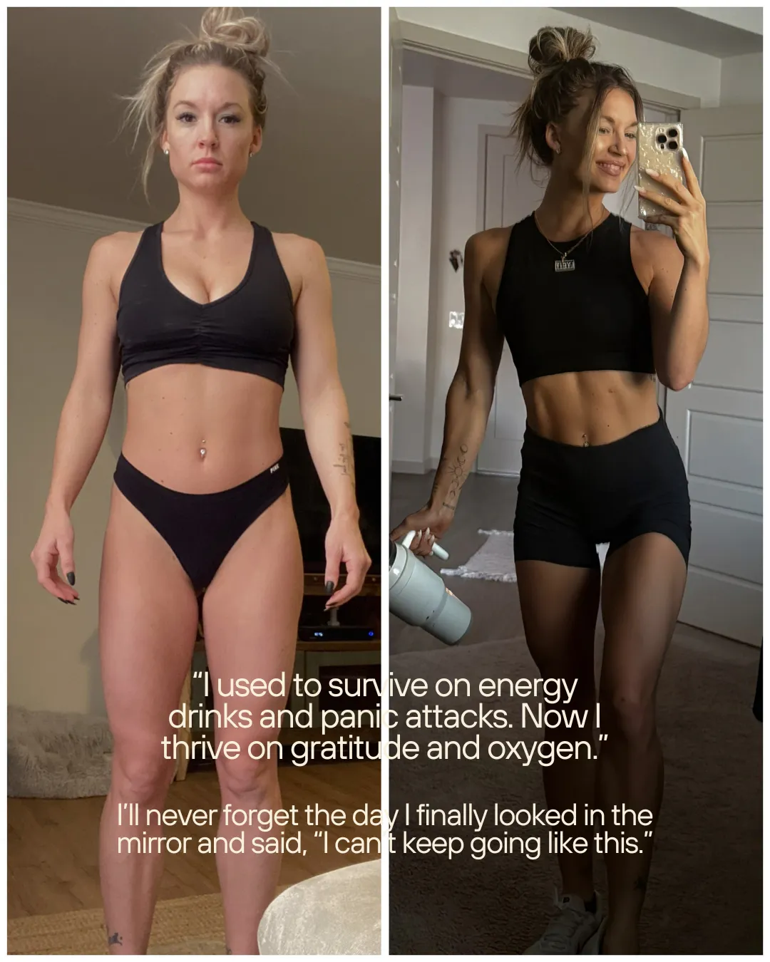 🚫 The first is caught in the cycle of trying everything — meditations, morning routines, diets, even more workouts — but still ends up staring at the ceiling at night, anxious, disconnected, and knowing she’s meant for more.